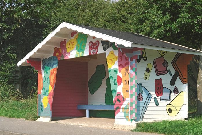 Abbildung zeigt Buswartehaus im Sondermaß und bauseits von den Schulkindern behandelt.