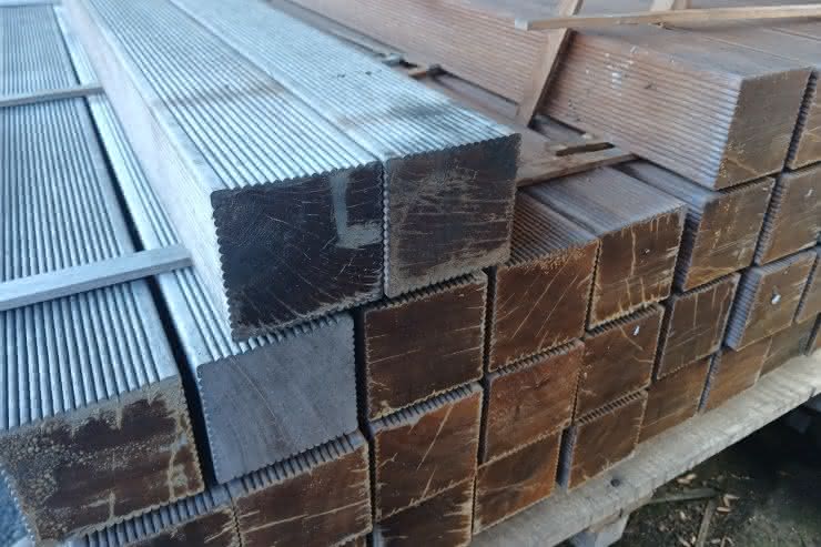 Verwenden Sie bei Produkten aus Bangkirai stets Verbindungen aus Edelstahl VA4. Eisenhaltige Metalle können mit der im Harz enthaltenen Gerbsäure reagieren und hinterlassen im Holz dunkle Flecken. Übrigens: Auch eisenhaltiger Rasendünger kann bei Kontakt mit dem Holz für eine unschöne Eisen-Gerbstoff-Reaktion sorgen.