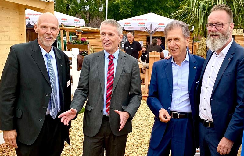 Vom 10. bis 14. September 2025 waren wir mit unserer Marke JODA® erneut Aussteller auf der NordBau in Neumünster – die größte Baufachmesse in Nordeuropa. Bei bestem Spätsommerwetter nutzten über 50.000 Besucherinnen und Besucher die Gelegenheit, sich auf dem weitläufigen Messegelände umfassend über aktuelle Trends, Produkte und Innovationen zu informieren. Auf einer Standfläche von über 500 Quadratmetern präsentierten wir uns eindrucksvoll als einer der führenden Anbieter für Holz- und Gartenholzprodukte. Ein besonderes Highlight war unsere „ JODA®-Ranch“, die mit ihrem authentischen Design und der liebevollen Detailausstattung zahlreiche Besucher an unseren Stand zog und zum echten Blickfang wurde. Die interessanten Gespräche mit unseren Fachhandelskunden und das große Besucherinteresse an unseren Produkten unterstreichen den Erfolg unserer Präsenz auf dieser Messe. Unser Markenauftritt fand Beachtung, Qualität und Verarbeitung unserer Exponate überzeugten und die Vielfalt von JODA® gefiel. NordBau-Geschäftsführer Dirk Iwersen (li.) führte Dänemarks Botschafter Thomas Østrup Møller (2. v.li.) und Schleswig-Holsteins Wirtschaftsminister Claus Ruhe Madsen (re.) zur JODA®-Ausstellungsfläche – unisono beglückwünschten die prominenten Gäste Bernd Jorkisch zur gelungenen Präsentation von Haus & Garten.